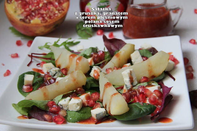 Ugotowac Blogspot Com Salatka Z Gruszka Granatem I Serem Plesniowym Polana Sosem Truskawkowym