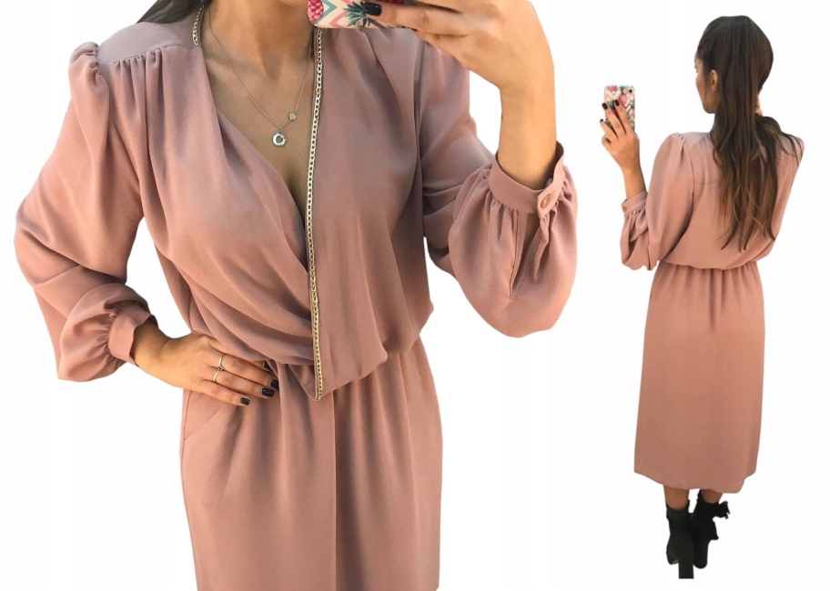 By O La La Piekna Sukienka Pudrowy Roz 38 M 7544284661 Oficjalne Archiwum Allegro