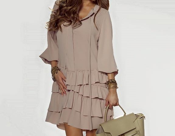 By O La La Sukienka Falbany Gloria Pudrowa 36 S 7282642177 Oficjalne Archiwum Allegro